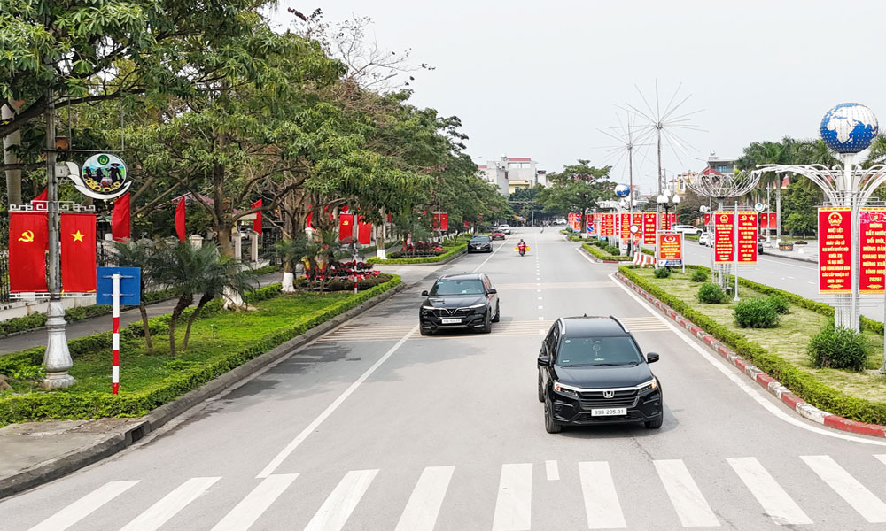 Tuyên truyền trực quan tại tuyến phố trung tâm phường Quế Võ. Ảnh: Sỹ Quyết. |