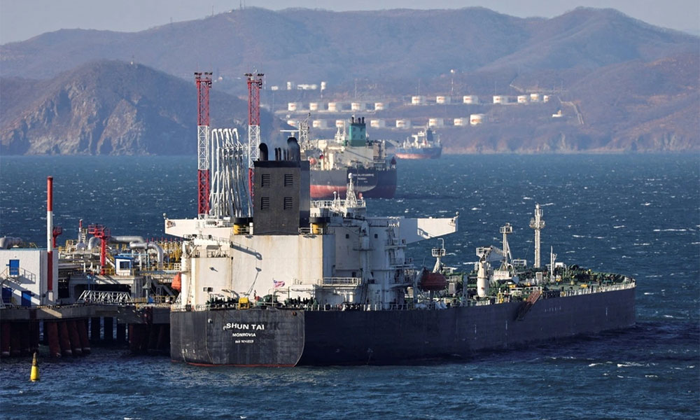 Một tàu dầu neo ở cảng của Nga. |