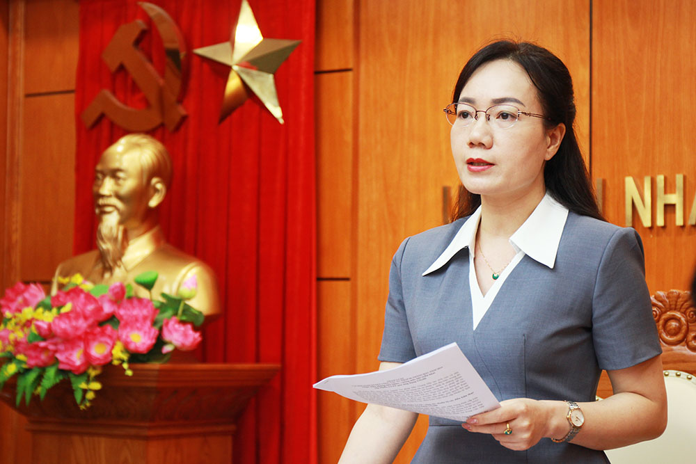 Giám đốc Sở Tư pháp tỉnh Bắc Giang Đỗ Thị Việt Hà phát biểu tại hội nghị. |