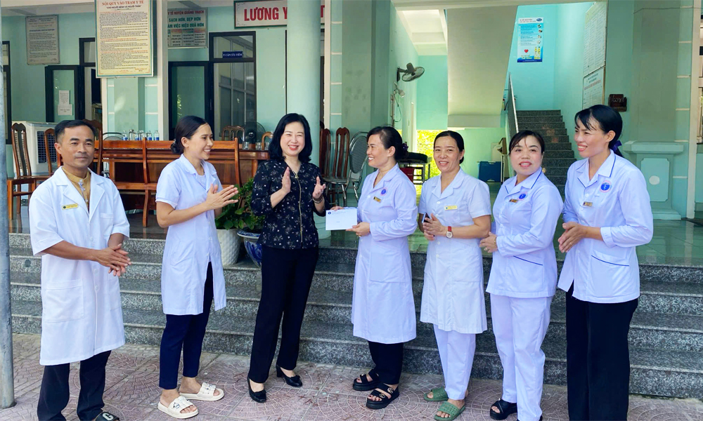 Bộ trưởng Đào Hồng Lan và đội ngũ cán bộ y tế cơ sở tỉnh Quảng Trị. |