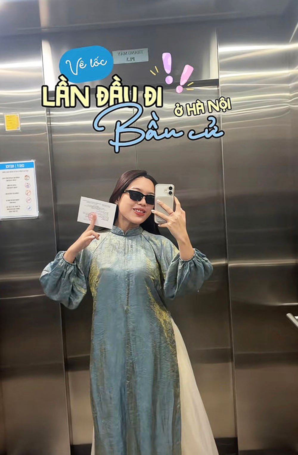 Sau khi hoàn thành việc bỏ phiếu, Thuyên cũng chụp một vài bức ảnh kỷ niệm tại khu vực bầu cử để lưu lại dấu mốc đáng nhớ trong cuộc đời.