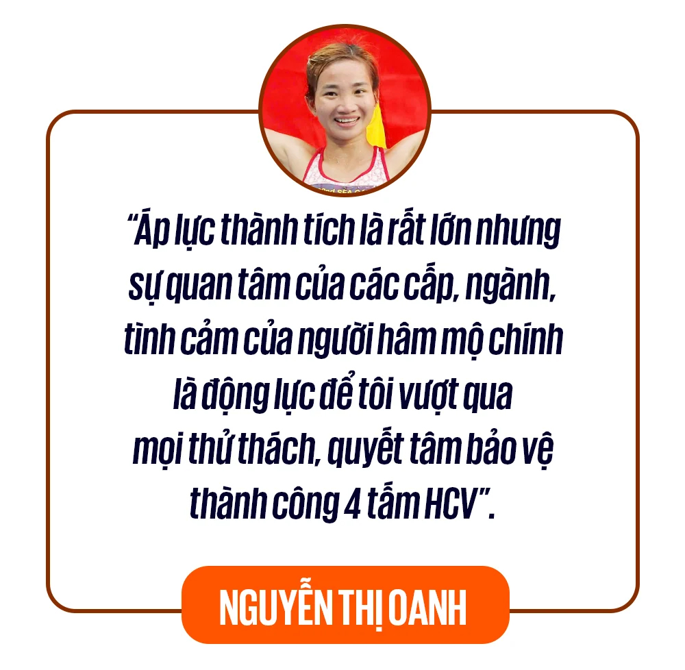 Đối mặt với áp lực đó, Nguyễn Thị Oanh chọn cách biến nó thành động lực. Cô chia sẻ với một tâm thế đầy bản lĩnh của một người từng trải qua mọi vinh quang lẫn cay đắng trên đường chạy: