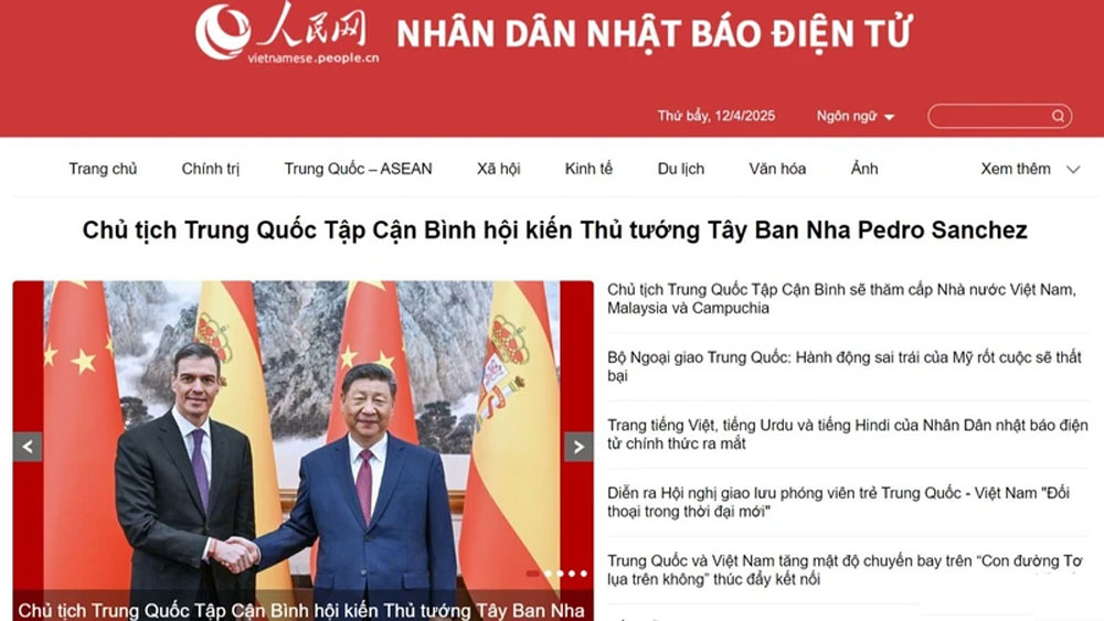 Mới đây, báo điện tử của Nhân Dân nhật báo - Cơ quan trung ương của Đảng Cộng sản Trung Quốc, chính thức khai trương trang tiếng Việt ở địa chỉ http://vietnamese.people.cn.
