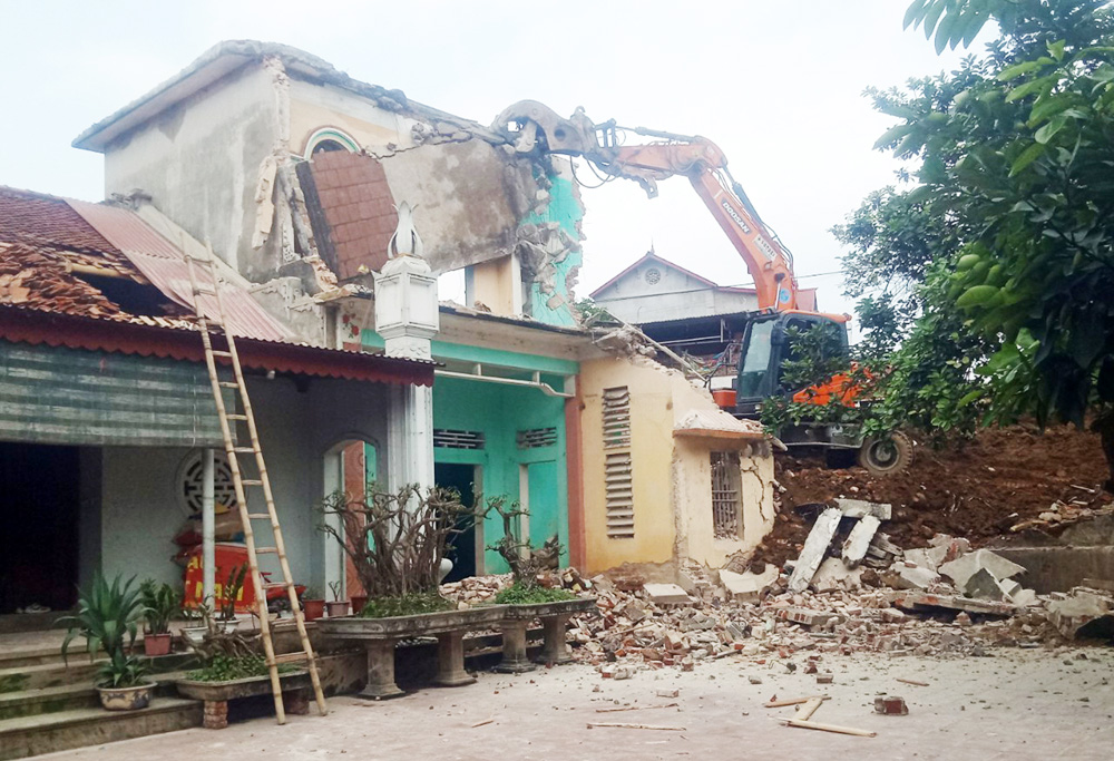 Tại huyện Tân Yên, UBND huyện giao chủ tịch UBND các xã, cán bộ địa chính chịu trách nhiệm giám sát, xử lý vi phạm thuộc địa bàn quản lý gắn với thực hiện nhiệm vụ trọng tâm trong năm của cán bộ, công chức. Theo đó, các xã có vi phạm đê điều gồm: Phúc Hòa, Hợp Đức, Liên Chung đã thành lập ban chỉ đạo và các tổ công tác đến từng hộ tuyên truyền, vận động, yêu cầu tháo dỡ công trình vi phạm; trường hợp chây ỳ kiên quyết tổ chức cưỡng chế theo quy định. Với sự quyết liệt từ chỉ đạo đến triển khai thực hiện, các trường hợp vi phạm đê hữu Thương trên địa bàn tự giác tháo dỡ công trình vi phạm.