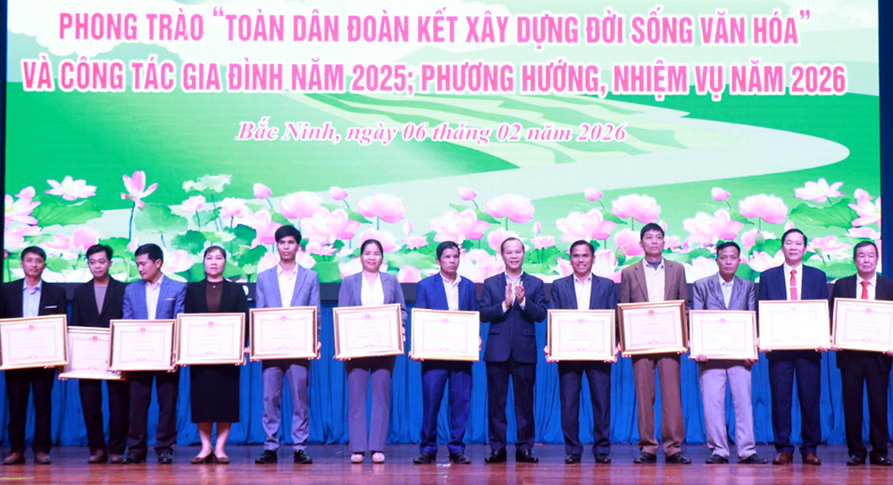 BẮC NINH - Ngày 6/2, Ban Chỉ đạo Phong trào “Toàn dân đoàn kết xây dựng đời sống văn hóa” và Công tác gia đình tỉnh Bắc Ninh (gọi tắt là Ban Chỉ đạo Phong trào) tổ chức hội nghị tổng kết phong trào “Toàn dân đoàn kết xây dựng đời sống văn hóa” và công tác gia đình năm 2025.
