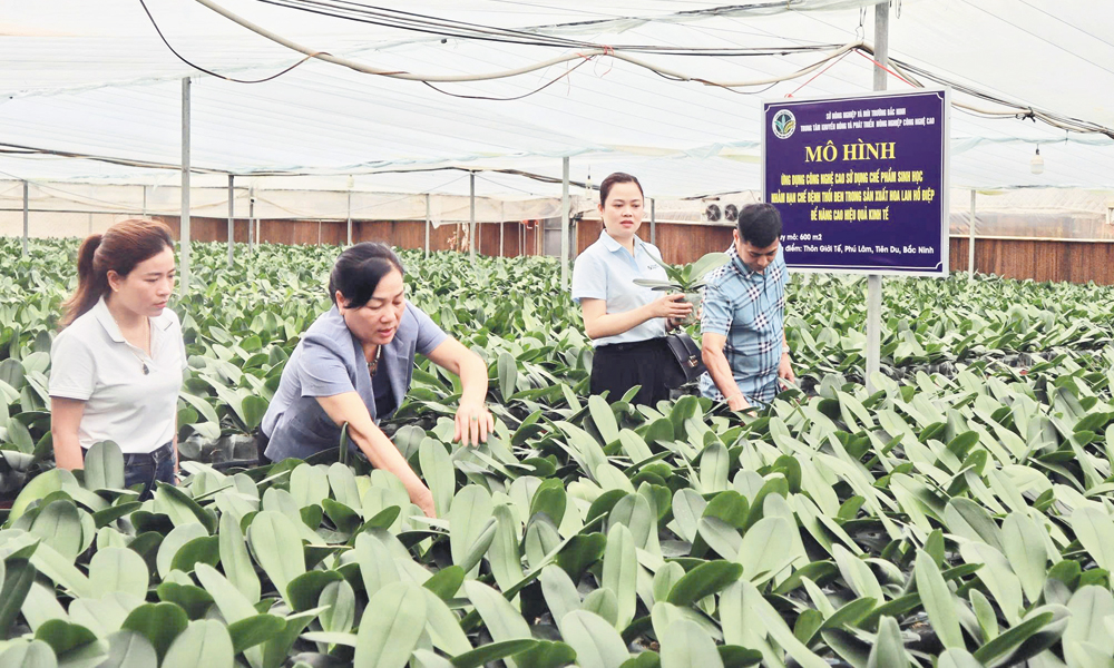 Mô hình ứng dụng công nghệ cao sử dụng chế phẩm sinh học trong sản xuất lan hồ điệp tại xã Tiên Du. Ảnh: Nguyễn Hưởng. |