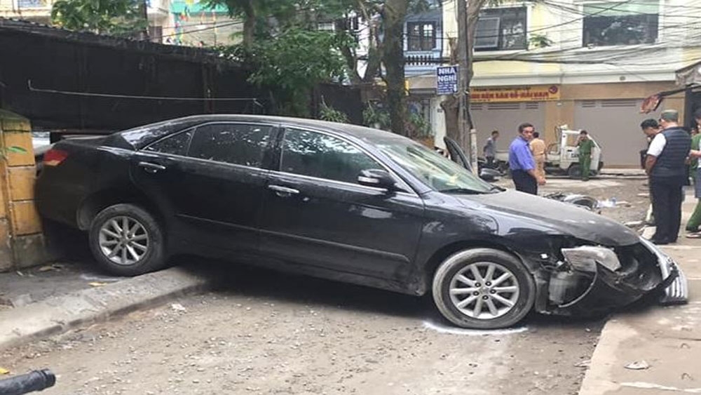Trước đó, vào khoảng 6 giờ 30 phút sáng 10-5, tại ngõ 250 Khương Trung, ô tô Camry BKS 30A-075.xx. đang lùi xe trong nhà ra đường thì va chạm với xe máy Honda Lead BKS 30K9-54xx do một phụ nữ điều khiển.