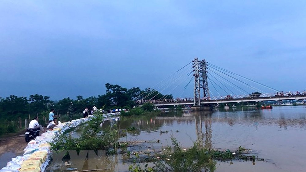 Nước sông Bùi đã rút nhưng vẫn ở mức cao, không có tuyến đê nào bị vỡ