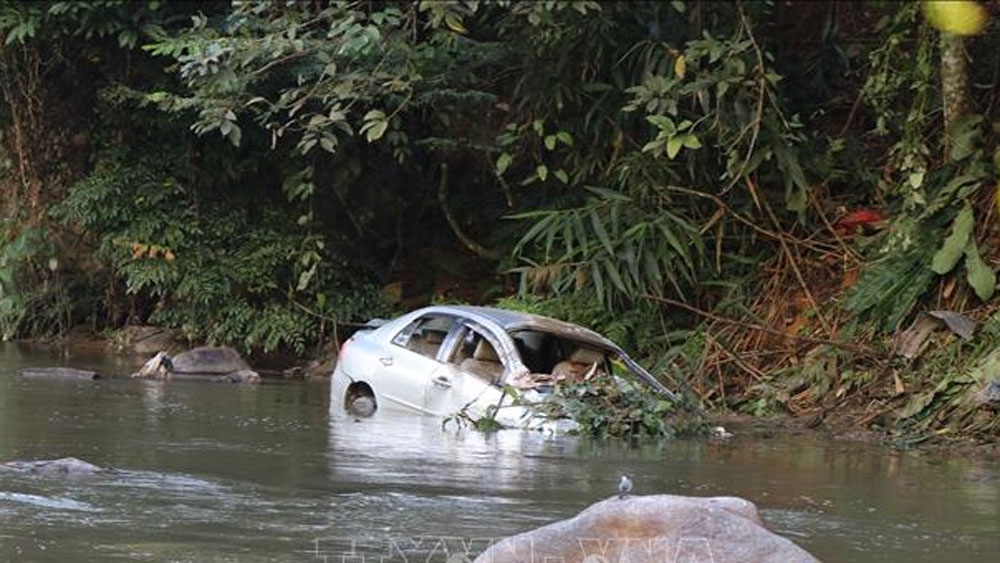 Lúc này, ô tô do anh Hoàng điều khiển lao xuống sông Cổ Chiên. Thời điểm này nước dưới sông cạn nên 3 người trên xe đã kịp thoát ra ngoài, leo lên bờ an toàn.