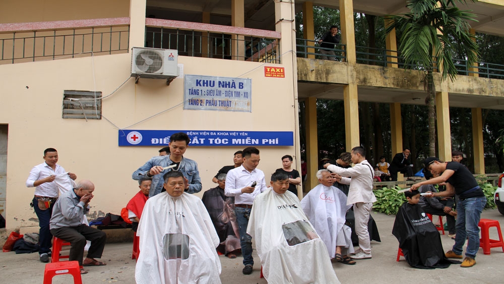 Sau này ông Tám còn đi xe máy đến các bệnh viện: Đa khoa huyện Tân Yên, Phục hồi chức năng tỉnh… để làm công việc ý nghĩa này. Có ngày mình ông cắt tóc cho 50 người, trong đó không ít bệnh nhân bị liệt.