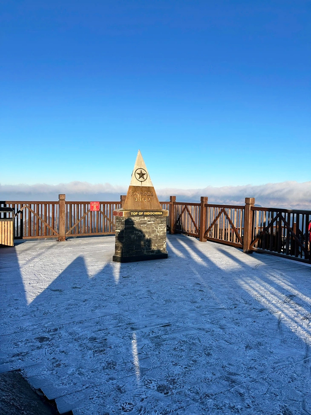 On November 21, a thin layer of frost appeared around the summit of Mount Fansipan in the early morning as temperatures dipped below 0°C, marking the first frost of the 2025–2026 winter on Vietnam’s highest mountain.