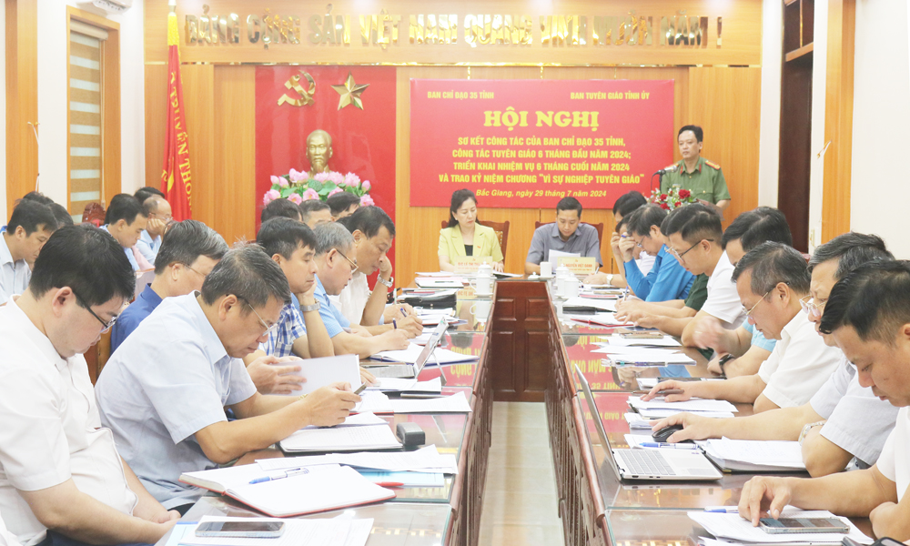 BẮC GIANG - Chiều 29/7, Ban Chỉ đạo (BCĐ) 35 tỉnh và Ban Tuyên giáo Tỉnh ủy Bắc Giang tổ chức hội nghị sơ kết công tác của BCĐ 35 tỉnh, công tác tuyên giáo 6 tháng đầu năm, triển khai nhiệm vụ 6 tháng cuối năm 2024.