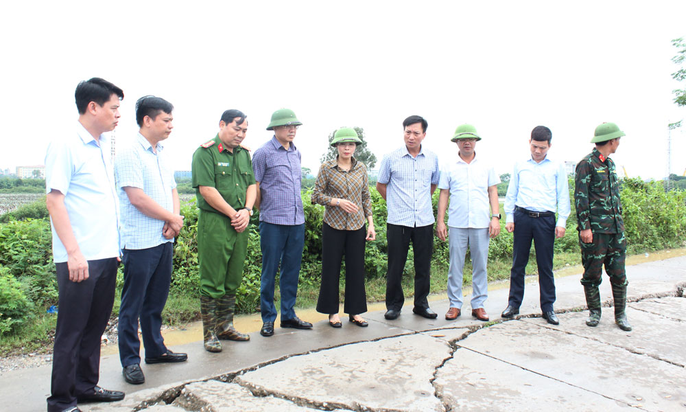 Đồng chí Nguyễn Thị Hương và đoàn công tác kiểm tra tình hình ứng phó với sự cố thiên tai tại các thôn: Đồng Nhân (xã Tam Giang), Đông Yên (xã Tam Đa) và khu phố Vạn Phúc (phường Kinh Bắc).