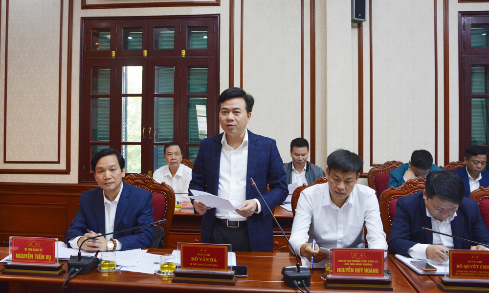 Lãnh đạo Đảng ủy phường Phù Khê báo cáo tình hình thực hiện nhiệm vụ chính trị của phường từ ngày 1/7/2025 đến nay. |