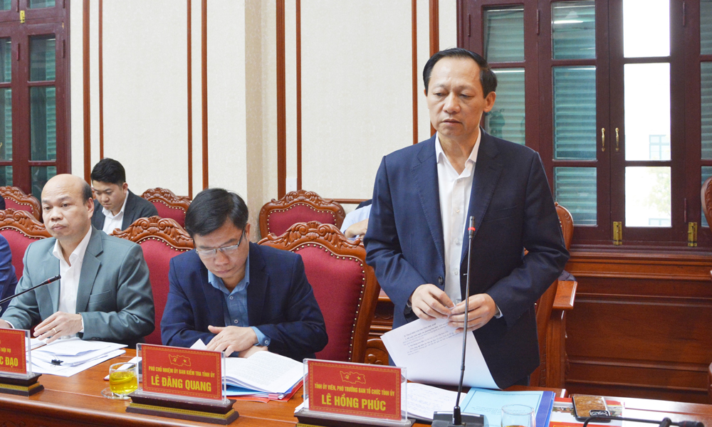 Lãnh đạo Ban Tổ chức Tỉnh ủy phát biểu tại buổi làm việc. |