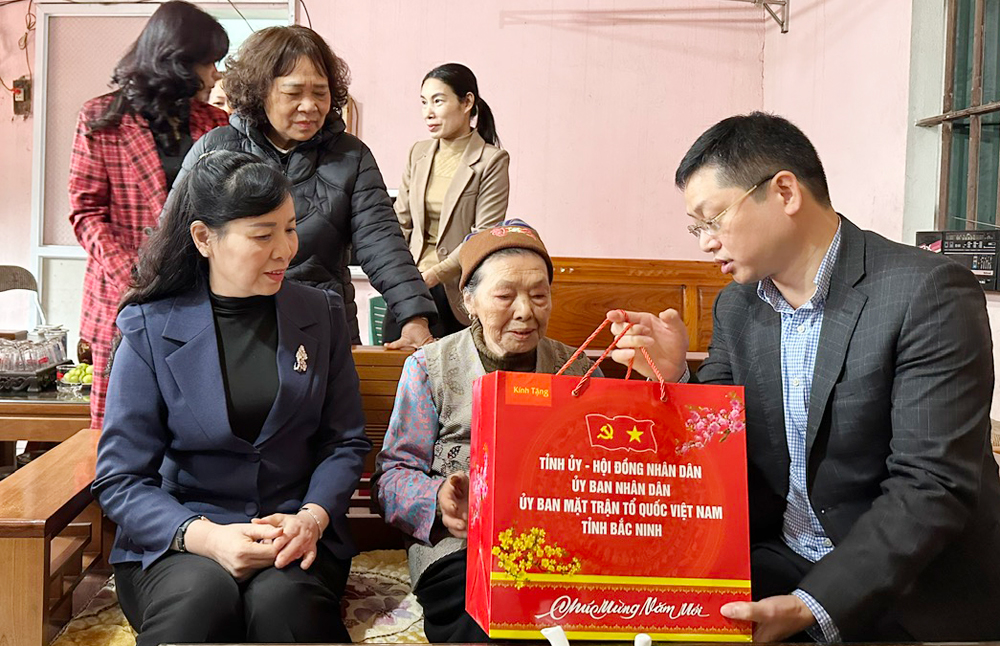 BẮC NINH - Ngày 4/2, các đồng chí: Trần Huy Phương, Phó Bí thư Tỉnh ủy, Chủ nhiệm Ủy ban Kiểm tra Tỉnh uỷ; Nguyễn Thị Hà, Ủy viên Ban Thường vụ Tỉnh ủy, Chủ tịch Ủy ban MTTQ tỉnh đến thăm, tặng quà gia đình chính sách, hộ nghèo tại xã Lạng Giang. Cùng đi có đại diện lãnh đạo Văn phòng Tỉnh uỷ, một số sở, ngành và UBND xã Lạng Giang.