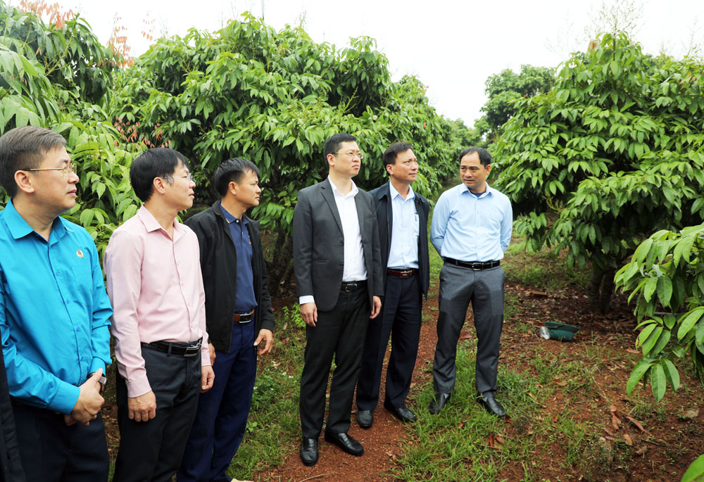 Đồng chí Trần Huy Phương thăm Hợp tác xã sản xuất - tiêu thụ vải sớm Phúc Hòa. |