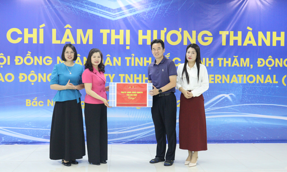 BẮC NINH - Ngày 2/4, Đoàn công tác của tỉnh do đồng chí Lâm Thị Hương Thành, Ủy viên Ban Thường vụ Tỉnh ủy, Phó Chủ tịch HĐND tỉnh làm Trưởng đoàn đã đến thăm, tặng quà động viên công nhân lao động và nắm tình hình sản xuất, đời sống, việc làm của đoàn viên, người lao động tại Công ty Trách nhiệm hữu hạn Suga International Việt Nam, Khu công nghiệp Quế Võ 3.