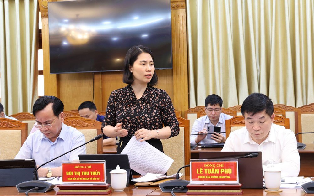 Đồng chí Bùi Thị Thu Thuỷ, Giám đốc Sở Kế hoạch và Đầu tư báo cáo về tiến độ giải ngân vốn đầu tư công. |