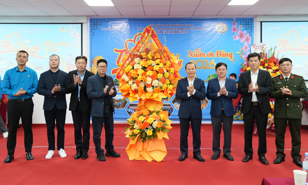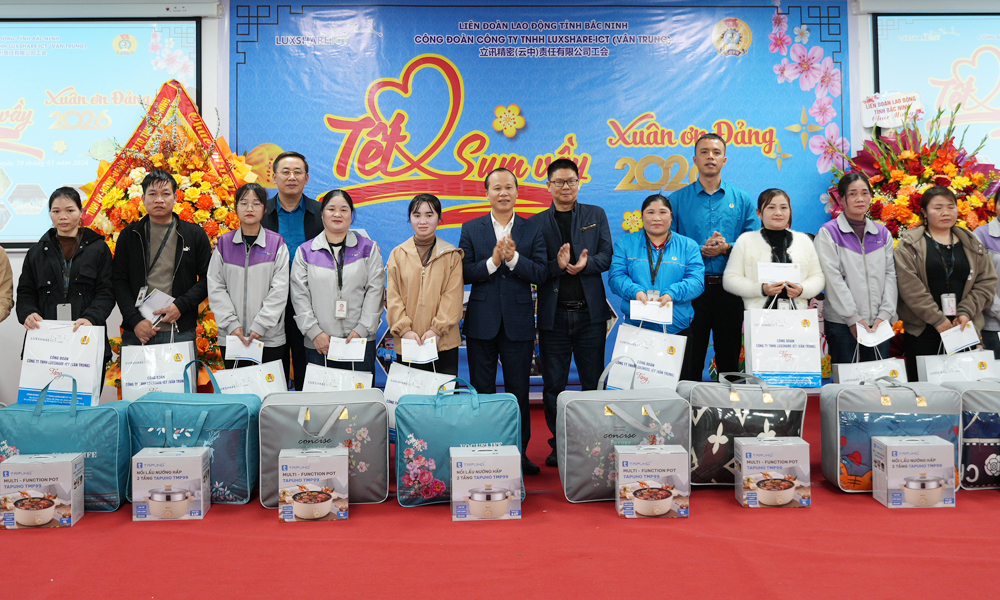 BẮC NINH - Chiều 30/1, Liên đoàn Lao động tỉnh Bắc Ninh phối hợp với Công đoàn Công ty trách nhiệm hữu hạn Luxshare - ICT Vân Trung tổ chức chương trình “Tết sum vầy - Xuân ơn Đảng” năm 2026.