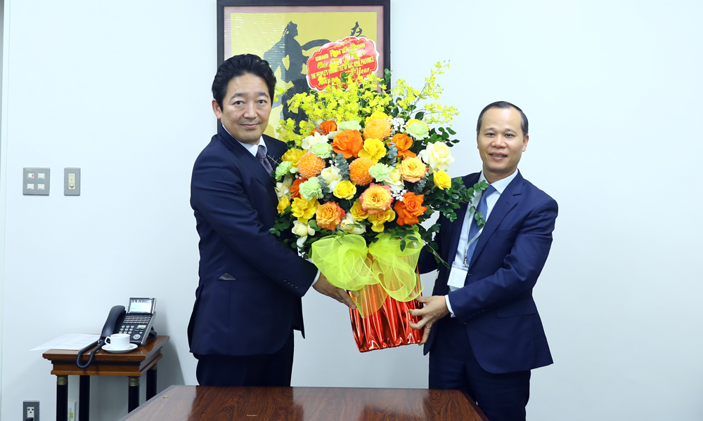 Đồng chí Mai Sơn tặng hoa chúc mừng Ngài Phó Đại sứ Nhật Bản tại Việt Nam. |