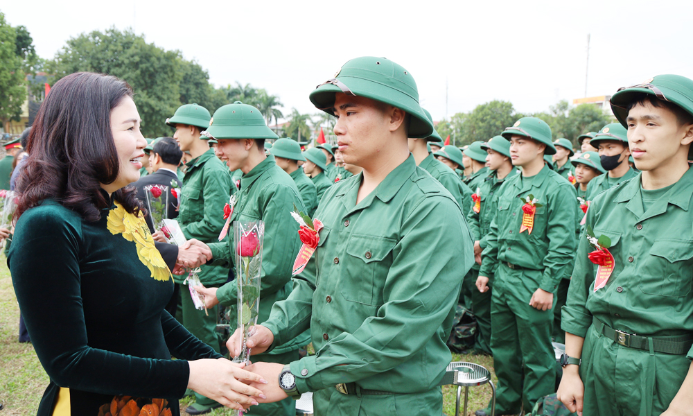 Đồng chí Trần Thị Vân chúc các tân binh nỗ lực rèn luyện, hoàn thành tốt nghĩa vụ quân sự. |