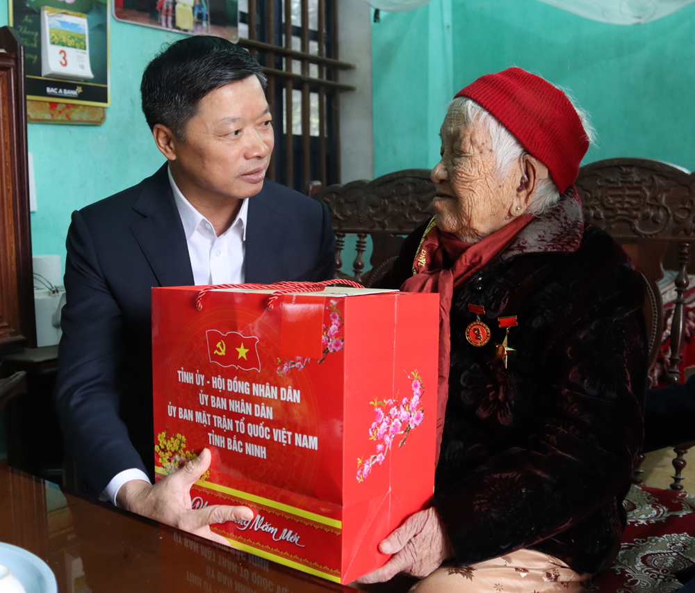 Đồng chí bày tỏ lòng tri ân sâu sắc trước những cống hiến, hy sinh to lớn của Mẹ Việt Nam Anh hùng Đồng Thị Nhâm và các gia đình người có công đối với sự nghiệp đấu tranh giải phóng dân tộc, bảo vệ Tổ quốc. Khẳng định, những năm qua, tỉnh Bắc Ninh luôn quan tâm, thực hiện tốt công tác “Đền ơn, đáp nghĩa”, chăm lo cho đối tượng chính sách, người có công trên địa bàn. Đồng chí đề nghị cấp ủy, chính quyền địa phương tiếp tục quan tâm sâu sát, triển khai đầy đủ, kịp thời và hiệu quả các chính sách an sinh xã hội, chăm lo tốt hơn nữa đời sống vật chất, tinh thần cho Mẹ Việt Nam Anh hùng, các gia đình chính sách, người cao tuổi, bảo đảm các chế độ được thực hiện đầy đủ, kịp thời.