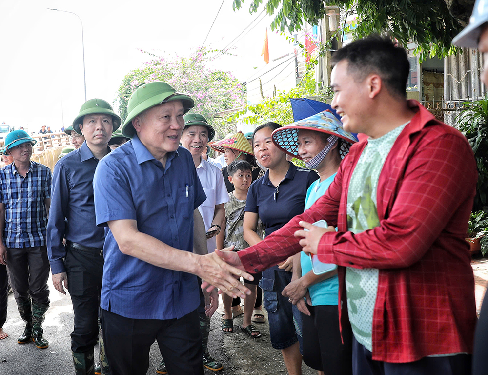 Đồng chí đánh giá cao cấp uỷ, chính quyền các cấp, lực lượng chức năng tỉnh Bắc Ninh, nhất là lực lượng quân đội, công an đã tập trung cao, nỗ lực hết mình cùng Nhân dân ứng phó, khắc phục hậu quả lũ lụt, qua đó giảm thiểu tối đa thiệt hại về người và tài sản do ngập lụt gây ra.