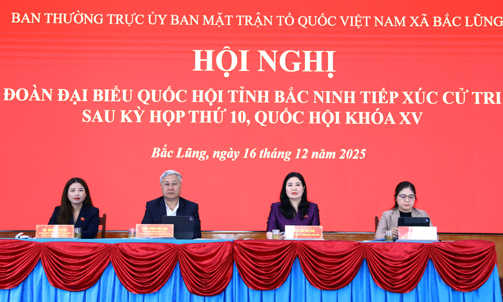 BẮC NINH-Sáng 16/12, Đoàn Đại biểu Quốc hội tỉnh Bắc Ninh gồm các đồng chí: Nguyễn Hòa Bình, Ủy viên Bộ Chính trị, Phó Thủ tướng Thường trực Chính phủ; Phạm Văn Thịnh, Ủy viên Ban Thường vụ Tỉnh ủy, Phó Chủ tịch UBND tỉnh, Trưởng Đoàn Đại biểu Quốc hội tỉnh Bắc Ninh; Đỗ Thị Việt Hà, Phó Giám đốc Sở Tư pháp tỉnh Bắc Ninh; Nguyễn Thị Hà, Giáo viên Trường Trung học phổ thông Hàn Thuyên tiếp xúc cử tri phường Võ Cường sau kỳ họp thứ 10, Quốc hội khóa XV.