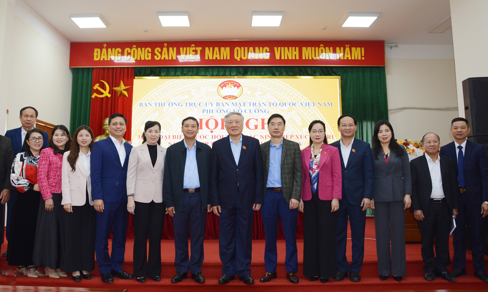 Đồng chí Nguyễn Hòa Bình cùng các đại biểu Quốc hội tỉnh tiếp xúc cử tri phường Võ Cường. |