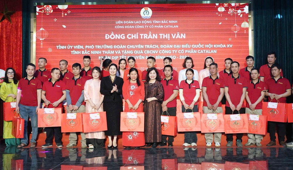 BẮC NINH - Ngày 2/2, đồng chí Trần Thị Vân, Tỉnh uỷ viên, Phó trưởng Đoàn Đại biểu Quốc hội tỉnh thăm, chúc Tết và tặng quà công nhân, lao động hoàn cảnh khó khăn tại Công ty cổ phần Catalan (xã Văn Môn) nhân dịp Tết Nguyên đán Bính Ngọ 2026.