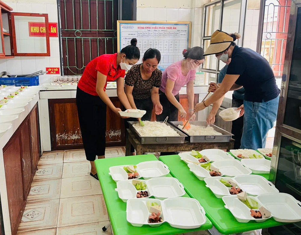 Hội viên phụ nữ xã Hoàng Vân nấu những suất ăn cho lực lượng làm nhiệm vụ hỗ trợ và người dân chịu ảnh hưởng của mưa lũ. |