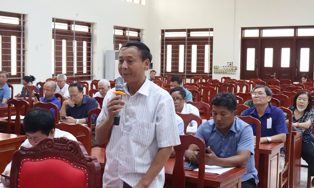 Người dân phường Bắc Giang hỏi về chính sách bảo hiểm y tế, bảo hiểm tự nguyện tại hội nghị triển khai Tháng cao điểm. |