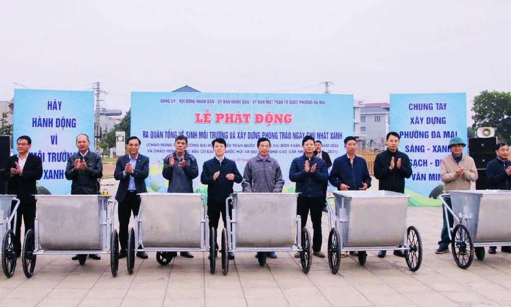 Nhân dịp này, UBND phường Đa Mai tặng 45 xe chở rác, 900 dụng cụ hỗ trợ vệ sinh môi trường cho 45 tổ dân phố (mỗi tổ dân phố được trang bị 1 xe chở rác, 10 xẻng, 10 chổi).