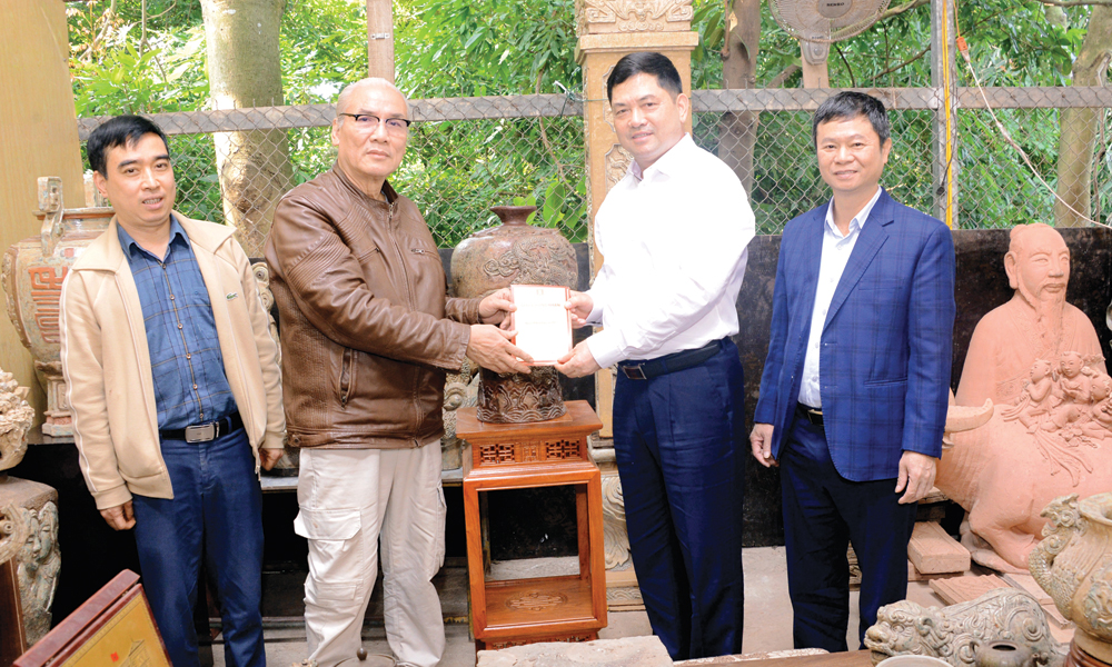Đồng chí Nguyễn Hồng Thái, Ủy viên Trung ương Đảng, Bí thư Tỉnh ủy thăm cơ sở sản xuất gốm Luy Lâu của nghệ nhân Nguyễn Đăng Vông (phường Song Liễu). |