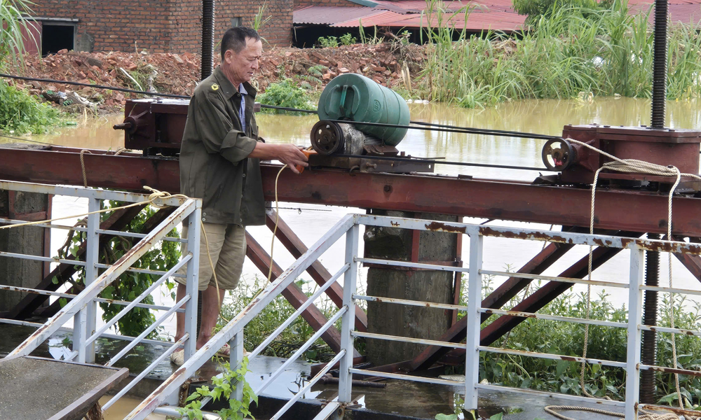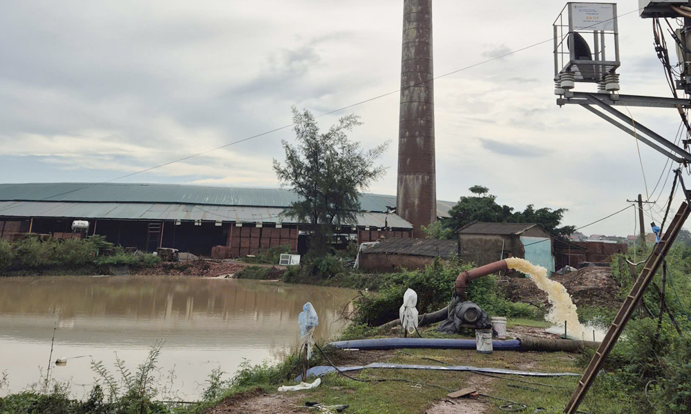 Xí nghiệp gạch huy động máy bơm công suất lớn bơm nước bảo vệ sản xuất. |