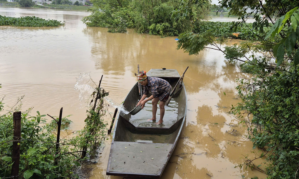 Nhiều hộ dân cũng chuẩn bị thuyền để di chuyển khi ngập lụt. Nhà máy xí nghiệp gạch Hải Phú, tổ dân phố Mỹ Tượng còn tự huy động máy bơm công suất lớn, bơm nước chống ngập, bảo vệ sản xuất.