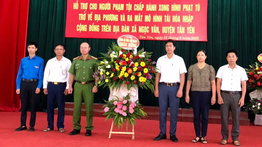 Thành lập năm 2022, mô hình “Tổ tự quản hỗ trợ tái hòa nhập cộng đồng” tại xã Ngọc Vân (Tân Yên) do Công an xã phối hợp với Hội Nông dân, Hội Liên hiệp Phụ nữ xã tham mưu thành lập. Các thành viên thường xuyên gặp gỡ tuyên truyền pháp luật, tư vấn về các thủ tục pháp lý, đăng ký cư trú, cấp căn cước công dân, xóa án tích cho những người đã chấp hành án phạt tù trở về địa phương. Cán bộ Hội vận động người tái hòa nhập tích cực tham gia sinh hoạt hội. Từ đó họ có cơ hội theo học các nghề: May mặc, nông nghiệp, trồng nấm... do Hội Liên hiệp Phụ nữ huyện tổ chức. Mô hình đã hỗ trợ 11 trường hợp được vay vốn ưu đãi; nhiều người khác được đào tạo nghề, giới thiệu việc làm miễn phí.