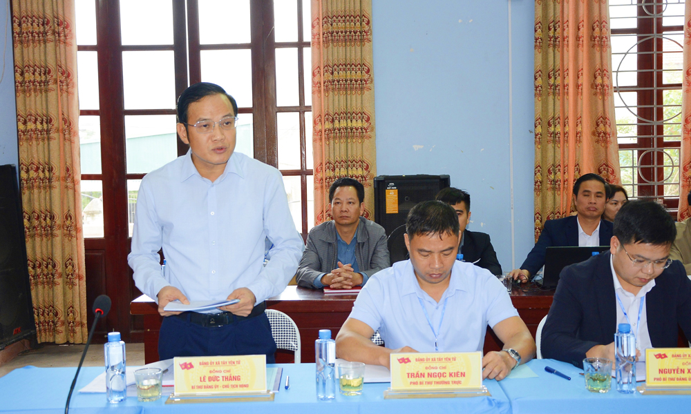 Lãnh đạo Đảng ủy xã Tây Yên Tử báo cáo kết quả triển khai thực hiện các nhiệm vụ của địa phương từ ngày 1/7/2025 đến nay. |