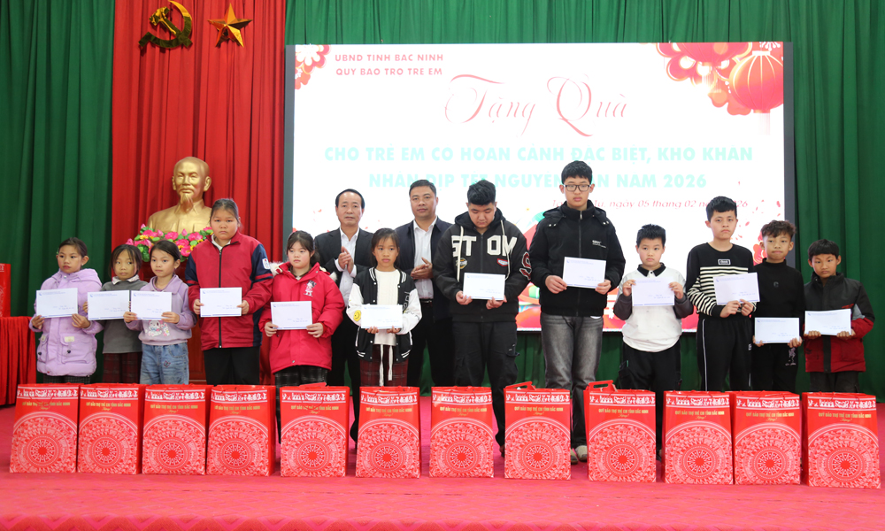 Trong dịp Tết Nguyên đán Bính Ngọ 2026, Quỹ Bảo trợ trẻ em tỉnh tặng quà Tết cho 300 trẻ em có hoàn cảnh khó khăn thuộc 20 xã trong toàn tỉnh, tổng trị giá 317,5 triệu đồng. Trong đó, riêng tại xã Tây Yên Tử, 35 trẻ em được tặng quà, mỗi suất gồm 1 triệu đồng tiền mặt và 1 túi quà Tết trị giá 500 nghìn đồng. Các suất quà còn lại, mỗi suất 1 triệu đồng tiền mặt sẽ tiếp tục được chuyển về các địa phương trong tỉnh để trao tận tay các em, bảo đảm kịp thời, đúng đối tượng.