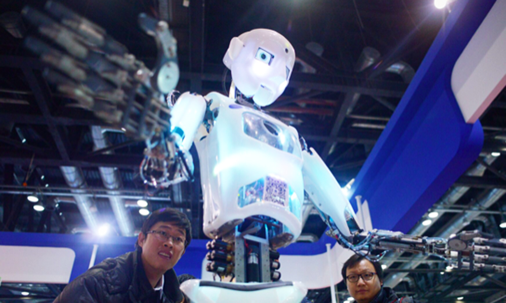 Robot được tích hợp AI trưng bày tại Hội nghị Robot Toàn cầu tại Bắc Kinh. |