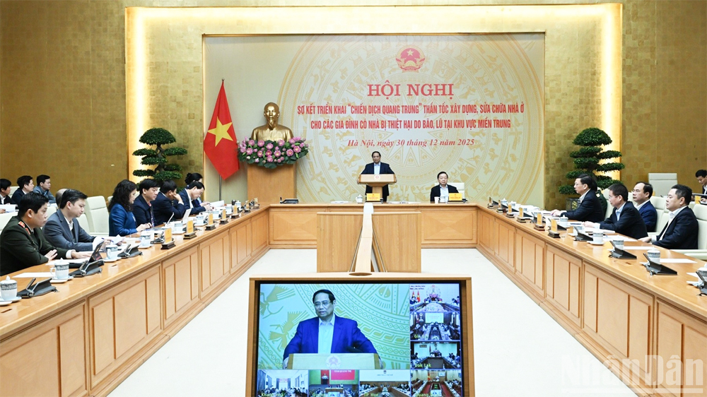 Sáng 30/12, tại Trụ sở Chính phủ, Thủ tướng Phạm Minh Chính chủ trì Hội nghị sơ kết triển khai "Chiến dịch Quang Trung" thần tốc xây dựng, sửa chữa nhà ở cho các gia đình có nhà bị thiệt hại do bão, lũ tại khu vực miền Trung.