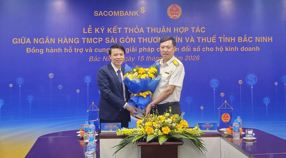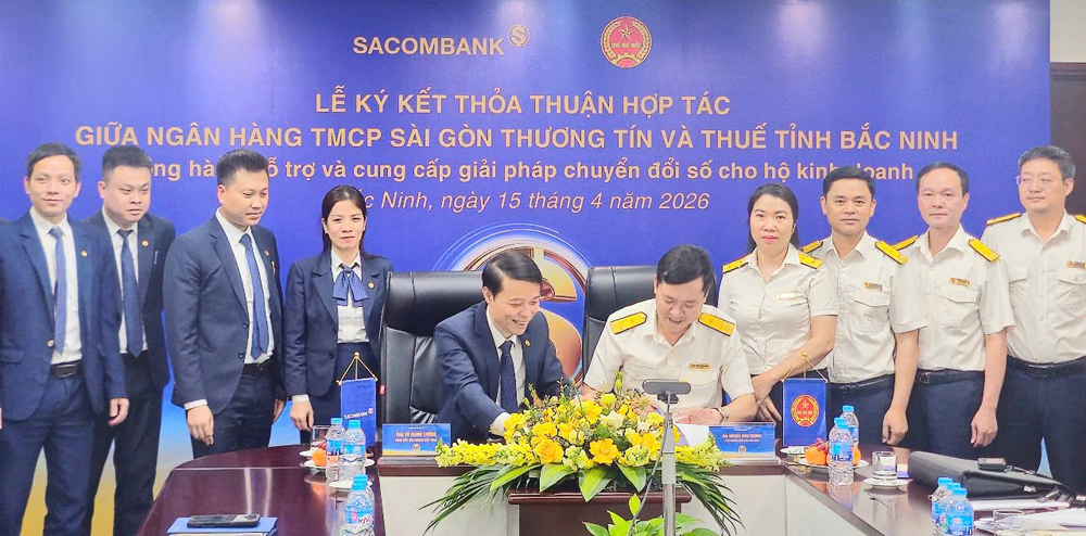 Ngày 15/4/2026, Ngân hàng thương mại cổ phần Sài Gòn Thương Tín (SACOMBANK) ký kết hợp tác cùng Cục Thuế - Bộ Tài chính và 14 cơ quan Thuế tỉnh, thành phố, trong đó có Thuế Bắc Ninh nhằm triển khai các giải pháp hỗ trợ hộ kinh doanh trong quản lý doanh thu, xuất hóa đơn điện tử, kê khai và nộp thuế.