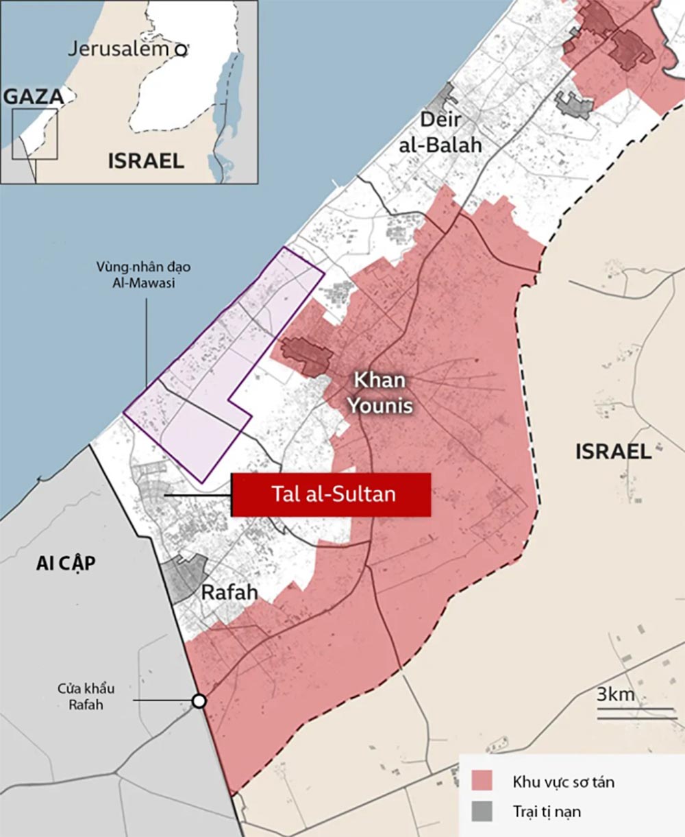 Cơ quan y tế ở Dải Gaza cho biết ít nhất 45 người chết và 249 người bị thương sau khi "Trại Hòa bình Kuwait 1" ở Tal al-Sultan, ngoại ô thành phố Rafah ở miền nam Dải Gaza trúng đòn không kích đêm 26/5 của Lực lượng Phòng vệ Israel (IDF). Sự việc làm dấy lên làn sóng chỉ trích mạnh mẽ của cộng đồng quốc tế, trong đó có Mỹ, nhắm vào Israel.