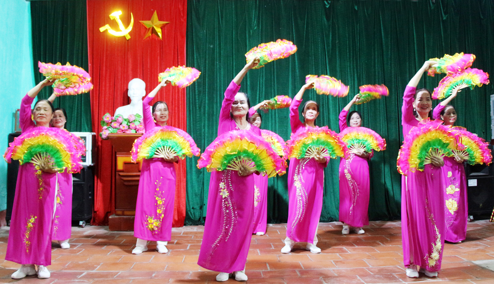 Một buổi sinh hoạt của Câu lạc bộ văn nghệ - dưỡng sinh - vũ điệu - khiêu vũ thể thao tổ dân phố Phố Mới, thị trấn Cao Thượng (Tân Yên). Ảnh: THU THỦY. |
