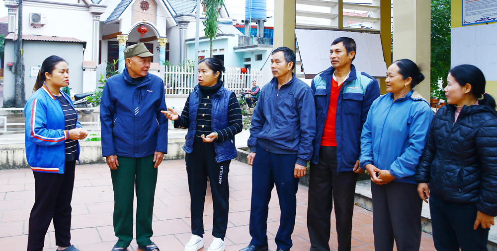 Đảng viên Chi bộ thôn Tây Lò vận động Nhân dân thực hiện giải phóng mặt bằng dự án Khu công nghiệp Nghĩa Hưng. |