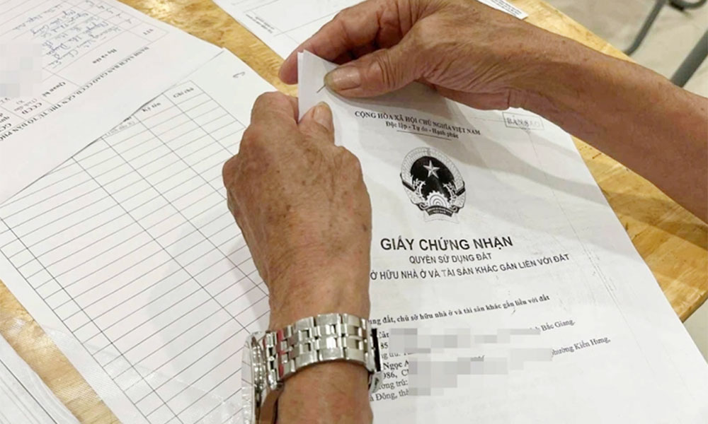 Người dân nộp sổ đỏ photocopy trong quá trình làm giàu, sạch dữ liệu đất đai. Ảnh: Linh Đan. |