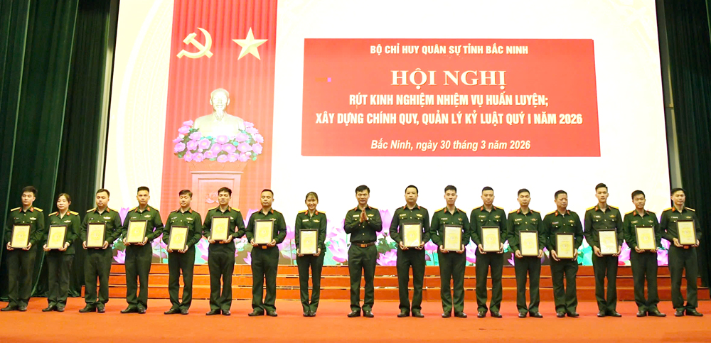 BẮC NINH - Ngày 30/3, Bộ Chỉ huy quân sự tỉnh Bắc Ninh tổ chức tổng kết, trao giải cho các tập thể, cá nhân xuất sắc tại Hội thi sáng kiến, cải tiến trang thiết bị kỹ thuật, đồ dùng huấn luyện năm 2026.