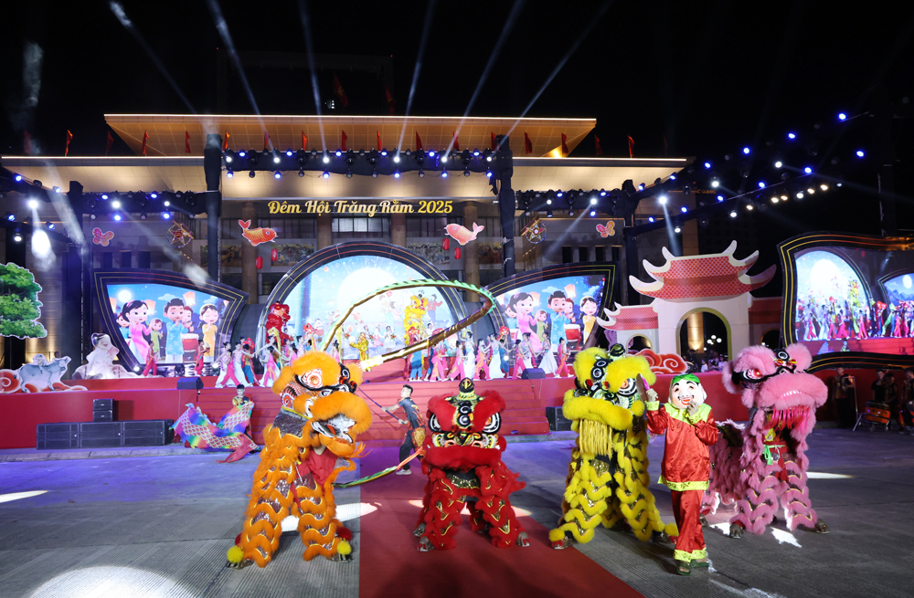 Đêm hội Trung thu càng sôi động với Liên hoan Lân - sư- rồng, quy tụ 10 đội thi; trình diễn 12 linh vật Trung thu truyền thống, trưng bày mâm ngũ quả. Tất cả tạo nên bầu không khí vui tươi, góp phần gìn giữ và lan tỏa giá trị văn hóa dân gian đặc sắc của tỉnh Bắc Ninh - vùng đất giàu truyền thống lịch sử, văn hiến. Trong không gian lung linh sắc màu, âm nhạc rộn ràng hòa cùng tiếng trống hội, thiếu nhi tham dự chương trình cùng nhau phá cỗ Trung thu - khoảnh khắc sum vầy, ngọt ngào, khép lại một đêm hội đầy ắp niềm vui và ước mơ.