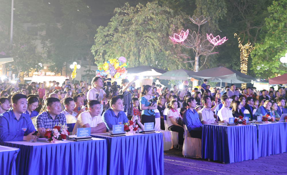 Các đại biểu và đoàn viên, thanh niên cùng Nhân dân tham dự chương trình. |